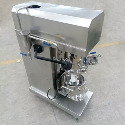 5L雙行星混合攪拌機有高速、低速、活動刮板作攪拌、剪切、刮壁、溶解用。低速運轉的攪拌錨使物料在密閉容器內上下翻動、剪切和混合,高速運轉的齒形分散盤與混合的物料產生強烈的碰擊和剪切,隨著攪拌錨的旋轉,行星架上的活動刮刀隨著旋轉,把釜體上的物料完全刮掉,使聚集物完全、徹底地達到混合、分散、溶解的要求。在其高低速的不同作用下,使物料能夠達到均勻的混合和分散。
